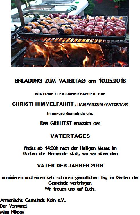 EINLADUNG GRILLFEST AM 10. Mai 2018
